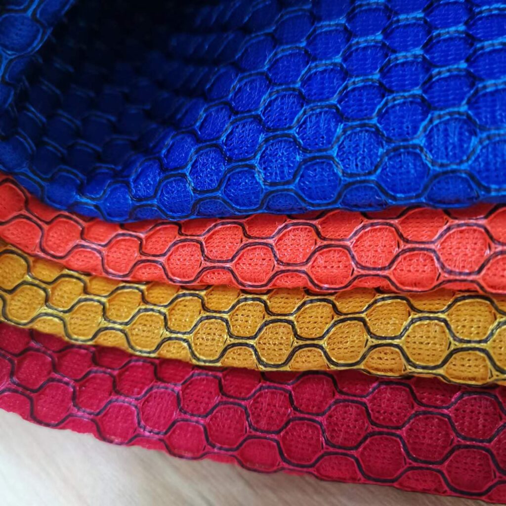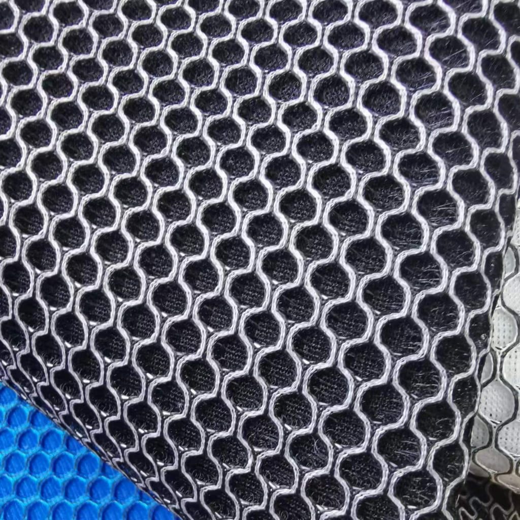 3D spacer mesh fabric features a unique three-layer sandwich structure with a hollow middle layer, making it an ideal material for high-performance sporting goods. It offers excellent breathability, quick-drying, cushioning, elasticity and durability.